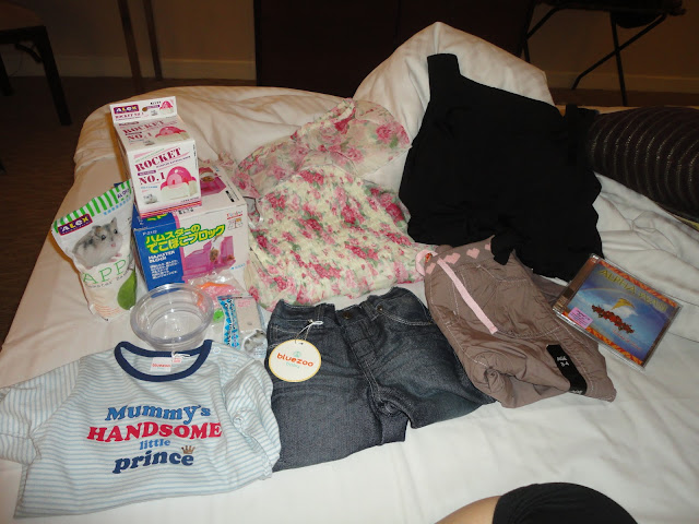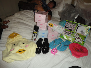 My first day loots, haha, scary isnt it, Rislin super love it as there were alot of barney items for her. And for my husband alone, he bought like 5-7 shirts as its so freaking cheap at 15RM each only. Converted to SGD only about $7 only!! Oh, i shopped at berjaya times, the things there are soooo cheap!