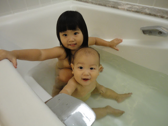 Rislin and Liris in bath! 2nd day water was much clearer!